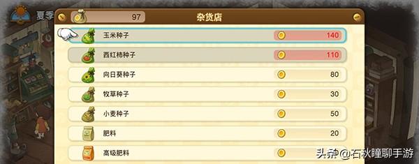 昨日因为节日的缘故,杂货店没有开门,今天一定要记得去杂货店买夏季的种子,可以购买到的只有西红柿、玉米、向日葵三种。这三种都可以无脑大面积种植,甚至你还可以额外种点小麦,到后面很有用。