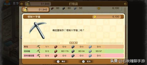夏天除了要挖矿以外,还得砍树。挖矿是为了提升农具的等级,为了制作银十字镐做准备。此外秋季还将解锁种子机,需要海量的矿石素材,这些素材也需要挖矿来获得。