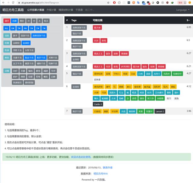 这里我推荐一个明日方舟的公开招募计算器,能够快速计算出各种可能出现的角色。