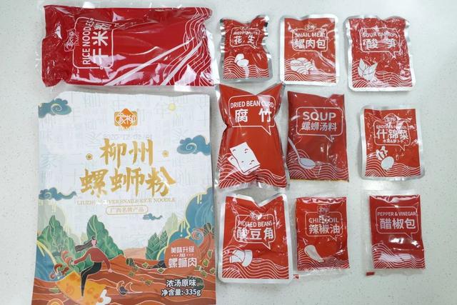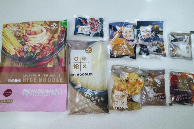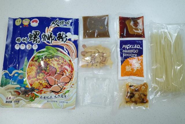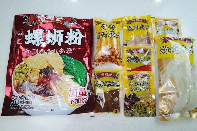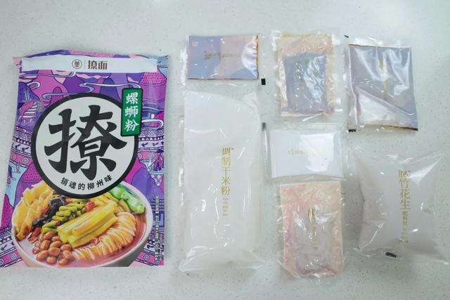 柳江人家螺蛳粉是网上风评比较好的一款。配料里面有鹌鹑蛋,是个小亮点。腐竹比较碎,而且口感有点糟。有一个水量袋,精确的可以加水。