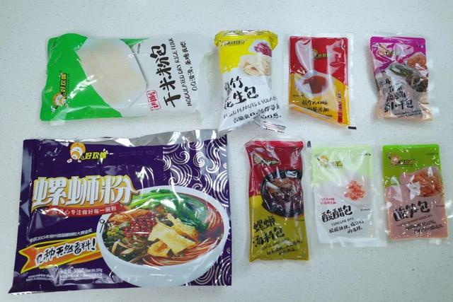 这家的螺蛳粉配料全部都是透明包装,只不过分量感觉都是比较少的。米粉相对来说偏硬,需要煮的更久一些。