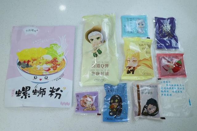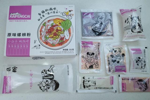 和上一款一样,这款的细节设计同样可可爱爱,还采用了很多猫咪插画。包装盒底部还有小惊喜,据说每一份都不一样。我们这一份写着“今天你实现螺蛳粉自由了吗?”