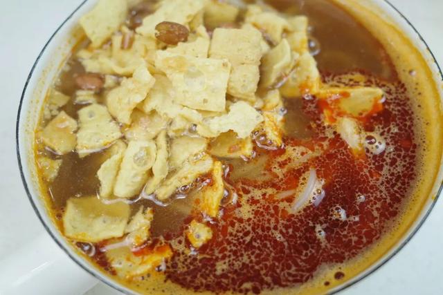 汤头味道偏咸,辣椒油香气不足,吃到后面喉咙有种火辣辣的感觉,让人有点不舒服。