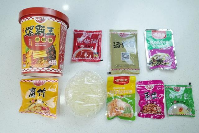 作为桶装螺蛳粉,这家同样采用的免煮粉丝。腐竹是没有炸过的,配料整体感觉不是很多。