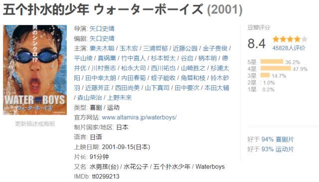 看简介很容易想到日本经典影片《五个扑水的少年》,无论是从导演和编剧,乃至当时的花美男妻夫木聪、玉木宏,都是不少影迷的经典记忆。