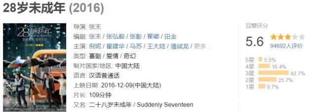 当令人担心的是,这部影片的另一个导演是张艺谋的女儿张末,她张末之前独立导演的作品《28岁未成年》,女演员还是谋女郎倪妮,最终在豆瓣评分才5.6。