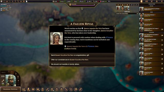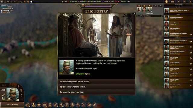 野心目标:要取得胜利,你的王朝需要完成 10 个难度逐渐上升的野心目标。基于您游戏的随机事件和人物的愿望,野心目标会动态生成。不会有两局完全相同的游戏,而一位贤明的统治者会知道何时应该调整方向。