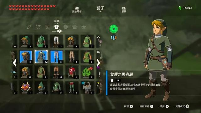 旷野之勇者套装在120个神庙完成之后获得,这就是真的勇士。