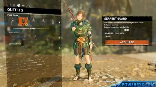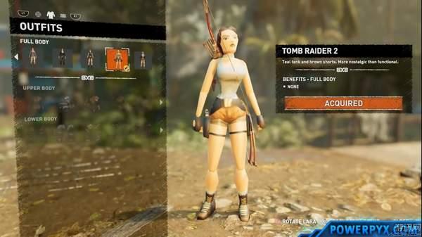 有玩家制作了视频,展现了劳拉全30套服装的样貌。与之前的《古墓丽影:崛起》不同的是,大部分衣服只是装饰用,仅有几件会提供一些特殊效果;同时因为本次游戏地点不再是冰冷刺骨的雪山,我们有机会看到劳拉穿上一些更凉爽的服装。