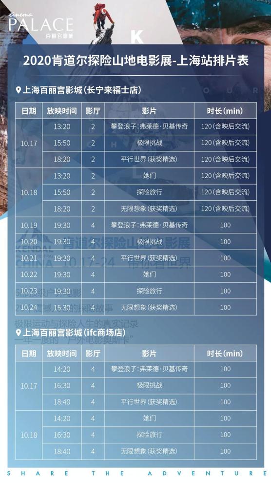 据肯道尔国际山地电影节官方微博消息,“2020肯道尔国际山地电影展·上海站”将于10月17在上海百丽宫影城隆重开幕。这次电影节为期八天,将有六部山地电影与观众见面。