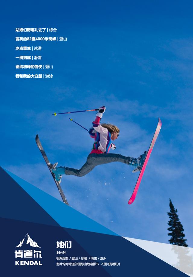总时长86分钟的电影被划分成6个大大小小的篇章:《姑娘们野哪去了》、《丽芙的82座4000米山峰》、《冰点重生》、《一滑到底》、《德纳利峰的信使》、《我和我的大白腿》。它们都曾作为独立短片入围肯道尔国际山地电影节。把它们放在一起,不难领会主办方的用意:这是一部以“女性”为视角的合集。