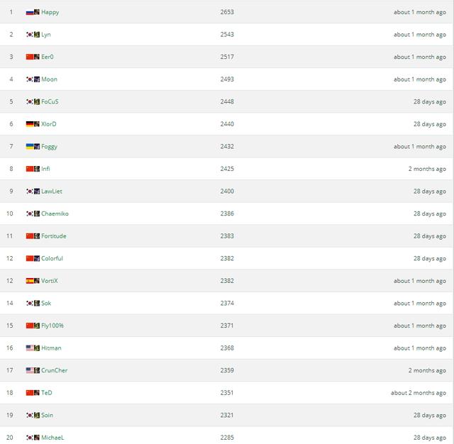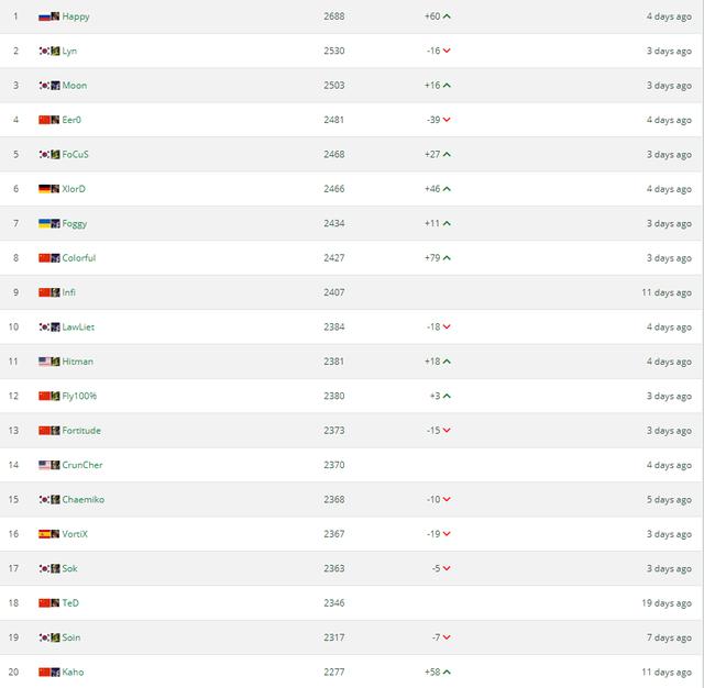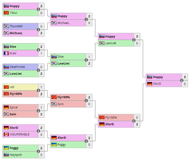 4月30日~5月2日,中国选手Infi、Fly、15sui出征W3C第六赛季季后赛,Infi与Fly不幸早早第一轮相遇。最终Fly杀入四强,0比3不敌Xlord,Happy依旧统治着欧洲赛事。