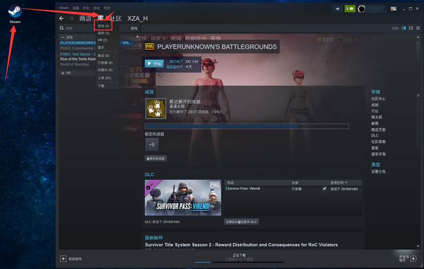 一、打开steam并登录,找到库,点击游戏,看到整个游戏目录;