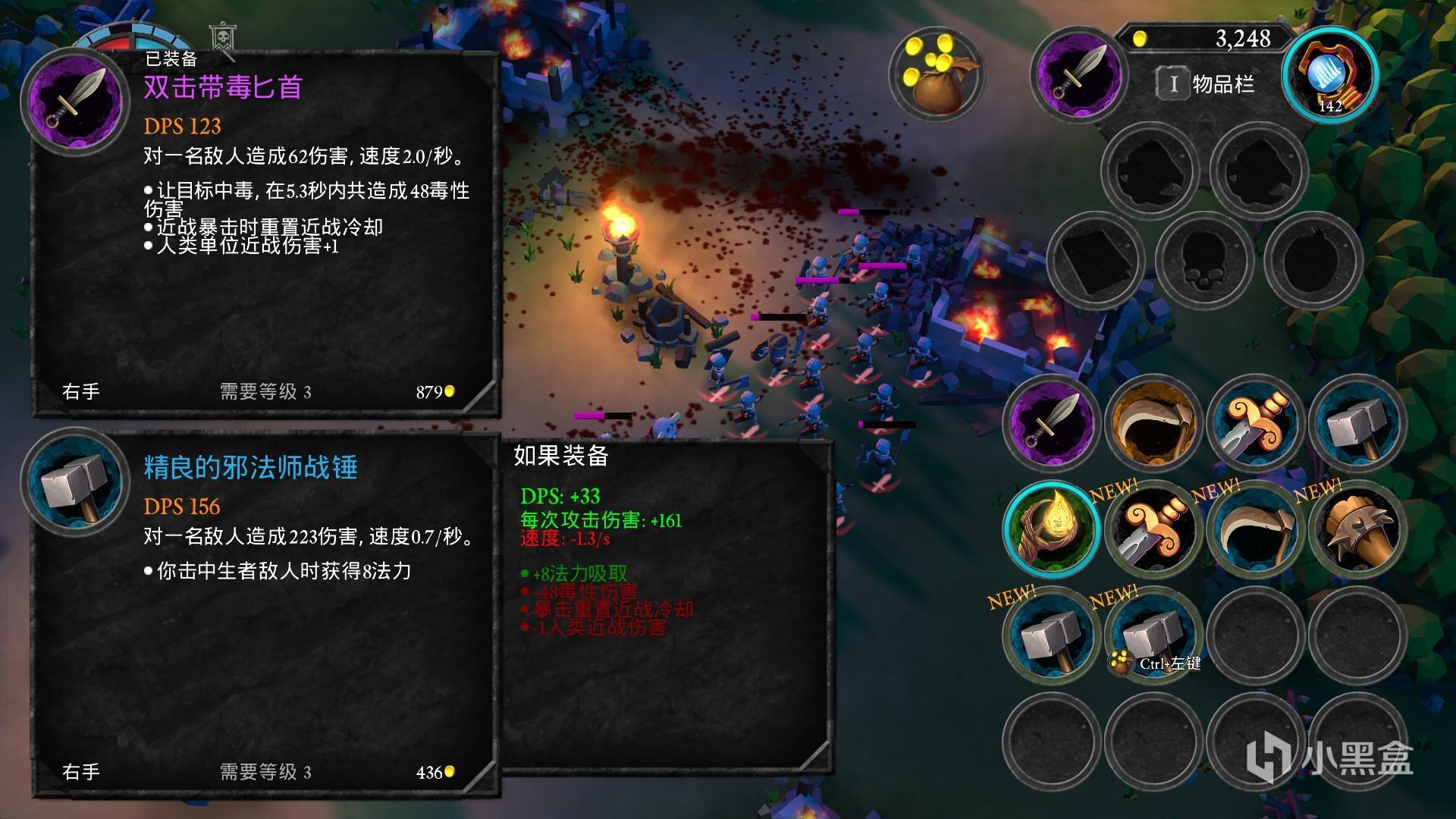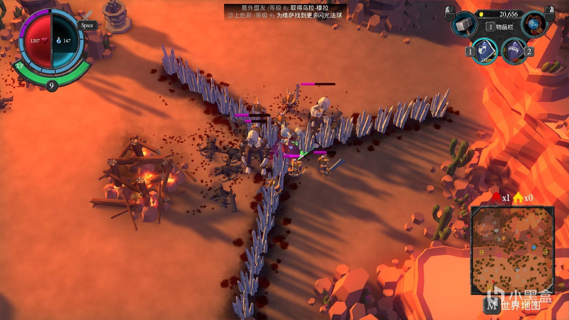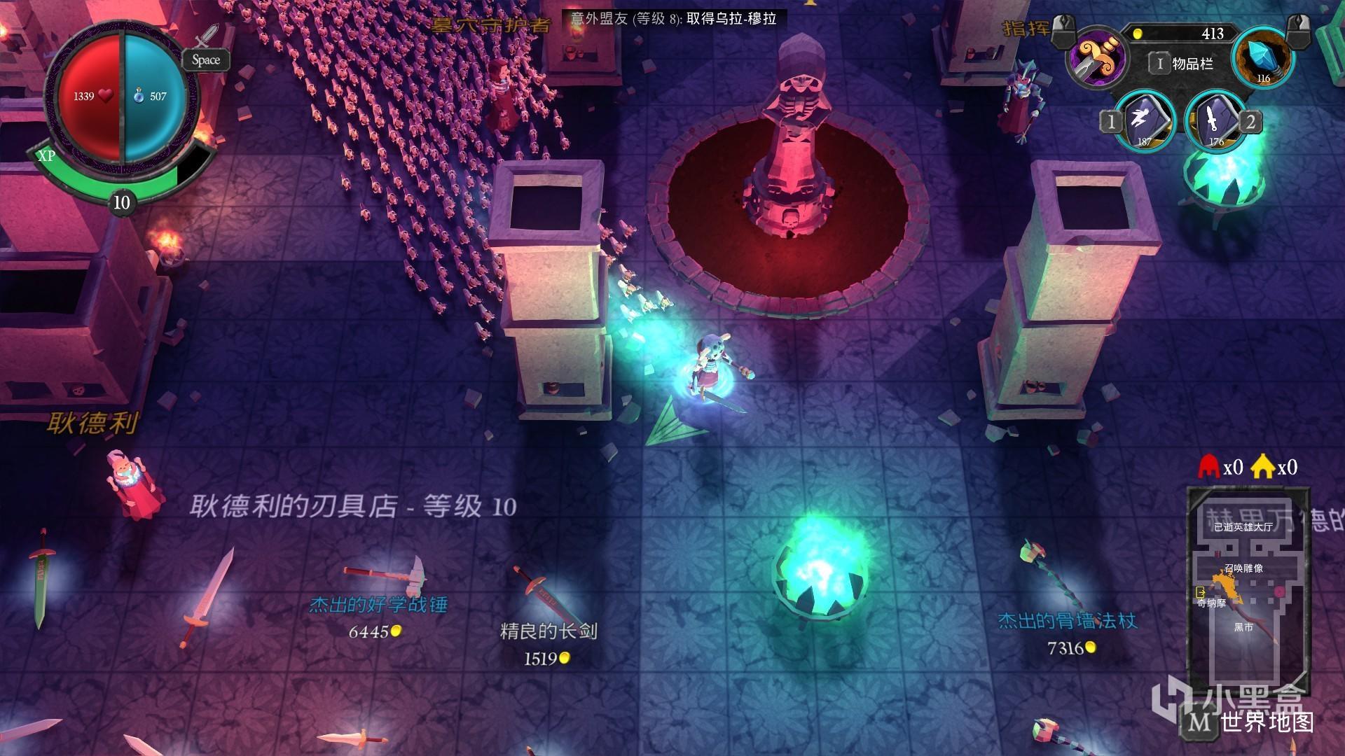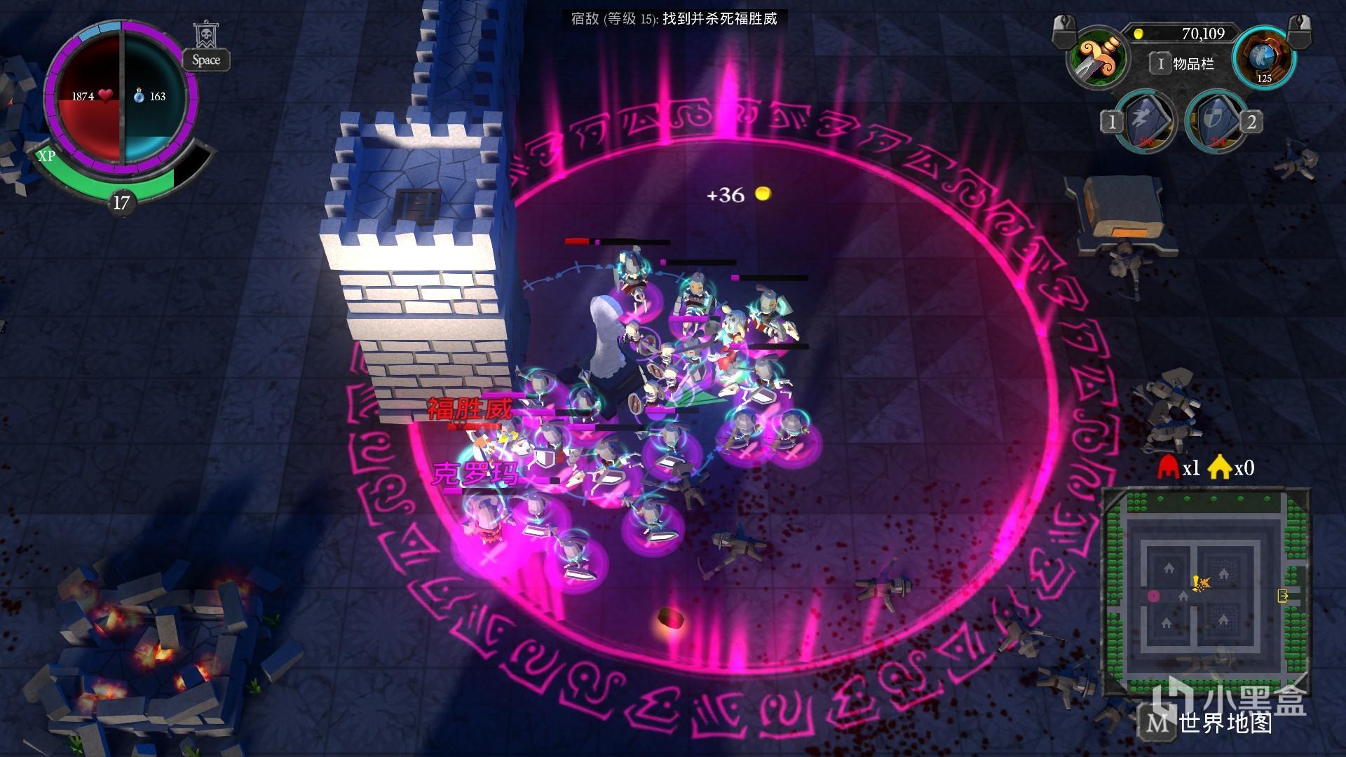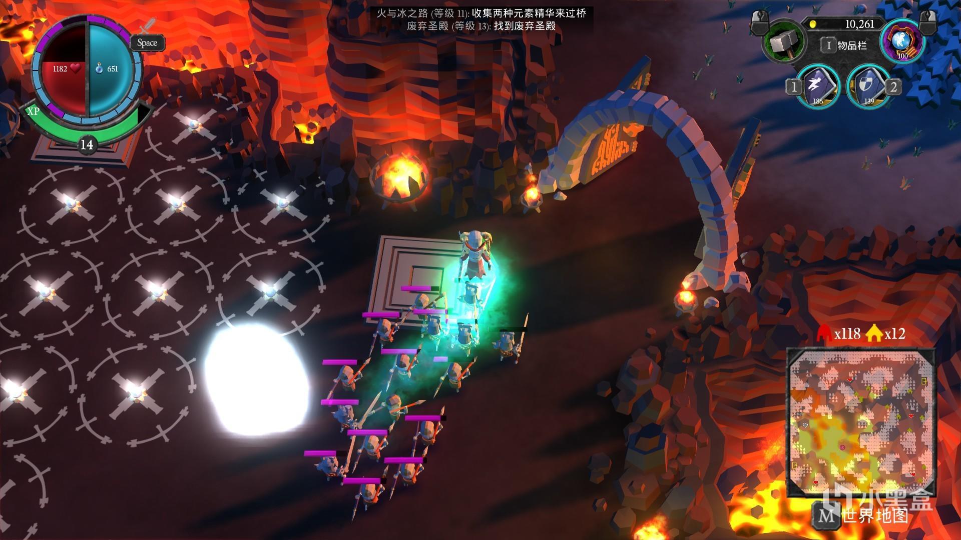 游戏中比较创新的点在于主角从传统的"圣骑士"变成了反派"死灵法师",让人眼前一亮,再者为了避免此类游戏操作大量兵种时较为繁琐导致门槛较高,游戏中指挥部队你只需要一个空格键,按一次所有部队朝着你朝向的方向攻击,再按一次就回到你身边保护你,不得不说,如此简化的操作在复杂的战斗中没有让我手忙脚乱,而是酣畅淋漓。此外,游戏提供多周目让玩家探索,但是目前来看,多周目并没有太多新颖的地方,这算是扣分项。