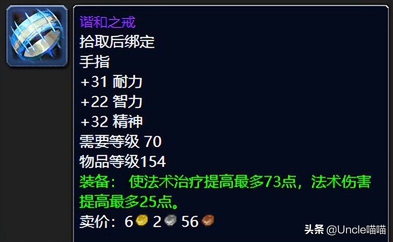这款高精神向的戒指来说的话对于牧师以及奶德来说具备着致命的诱惑力,不仅仅是因为无可匹敌的精神,还因为这款戒指并非装备唯一,所以拿上两个对于牧师奶德来说已然毕业好吧!