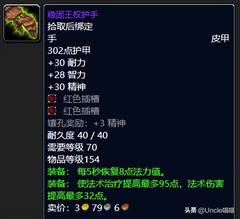 对于奶德来说已然拿了就毕业了,喵叔当年的奶德很幸运第一次去刷刷队伍就有了哈哈!