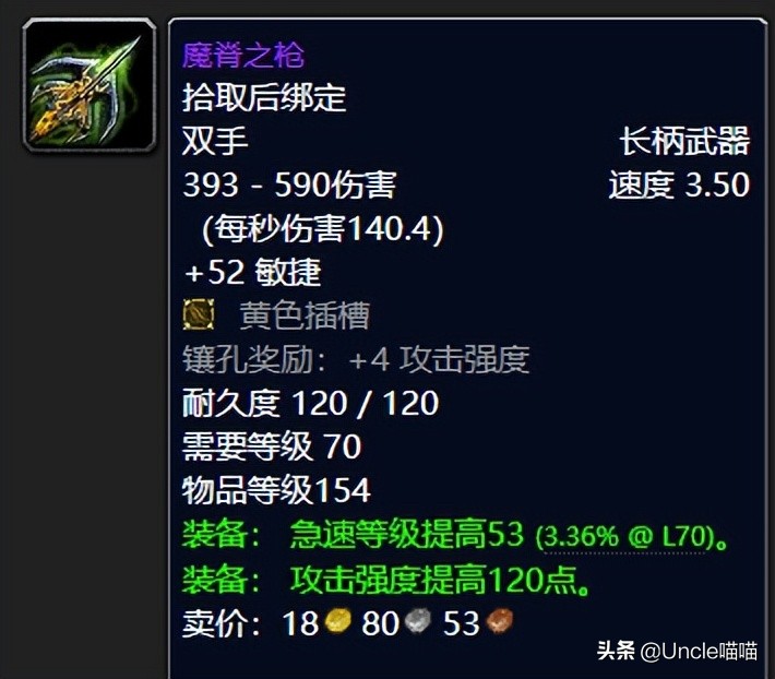 毫无疑问魔脊之枪的话在于猎人心目中的地位应该是无法撼动的,当年多少猎人玩家得知SW小怪出品如此高端大气上档次的长柄武器之后纷纷进军小怪刷刷队伍。万年TBC年代的猎人玩家们对于这款武器应该是有着纯天然的情感在里面的。