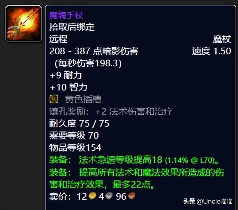 小怪出品的法系高急速带黄色插槽的魔魂手杖应该是法系输出必备急速向魔杖了。