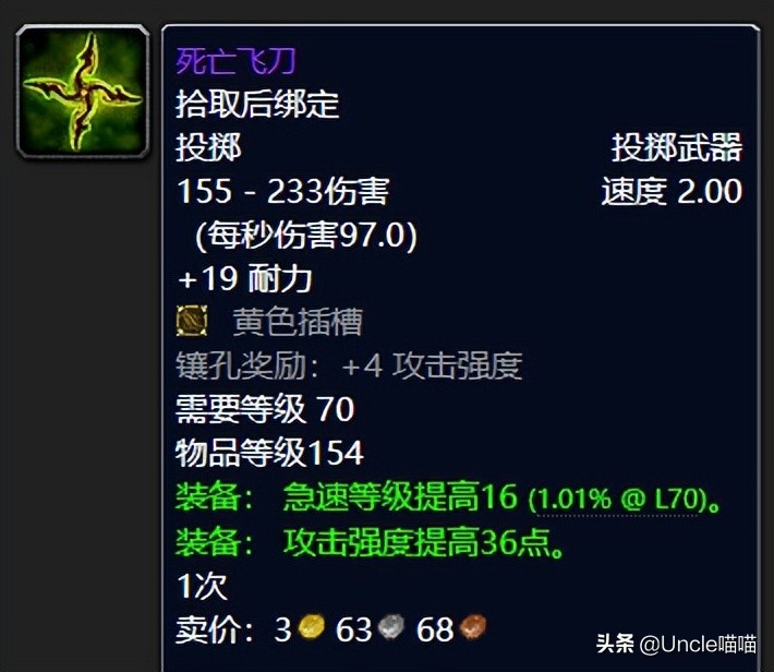 投掷武器来说的话其实还是可以的,很多人诟病只是加了耐力丝毫没有敏捷,但是好歹人家给了个黄色插槽附送4点攻强好吧,再者急速的收益在后期还是有目共睹的,小怪出品性价比也是极高,你还能说啥呢?