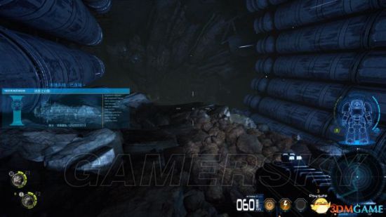 从这次从底部开始进入废物处理室,来到之前两个气闸的前面,可以去到左侧的集装箱内并且躲过大批敌人以及炮塔的攻击去到机库所在位置。