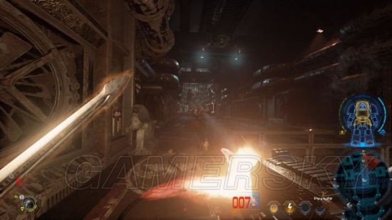 来到引擎维修室就完全两码事,这里有一台炮塔,一定要找个空档时机将其控制下来或者是毁掉。