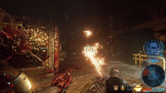 在进入接下来的区域前,建议先进入整备间恢复一下医药包,以及拿取火焰枪作为主武器。