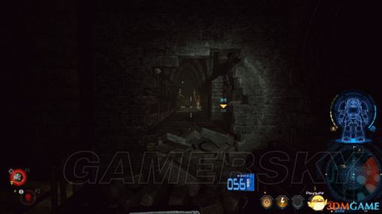 来到与发电机房一墙之隔的楼梯顶部,看似无路,其实可以摧毁墙体继续前进。
