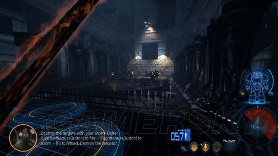 step3.进入到引擎大厅,先控制两座炮塔对周遭的混血人进行清理。