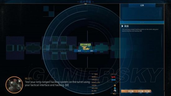 step7.第六场训练就是骇入炮塔,按M键然后按扫描选择靠近你的炮塔进行骇入,你可以选择启动炮塔、摧毁炮塔或者是骇入(控制)炮塔。