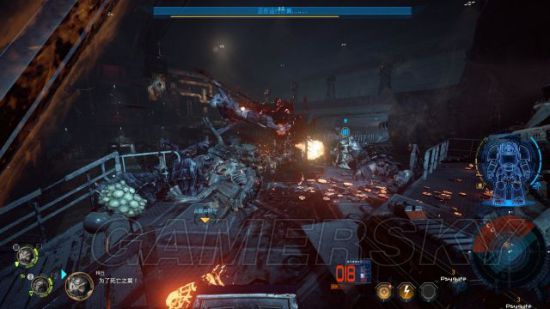 然后要注意从第一个巢穴杀出来以及引擎室补充的敌人。