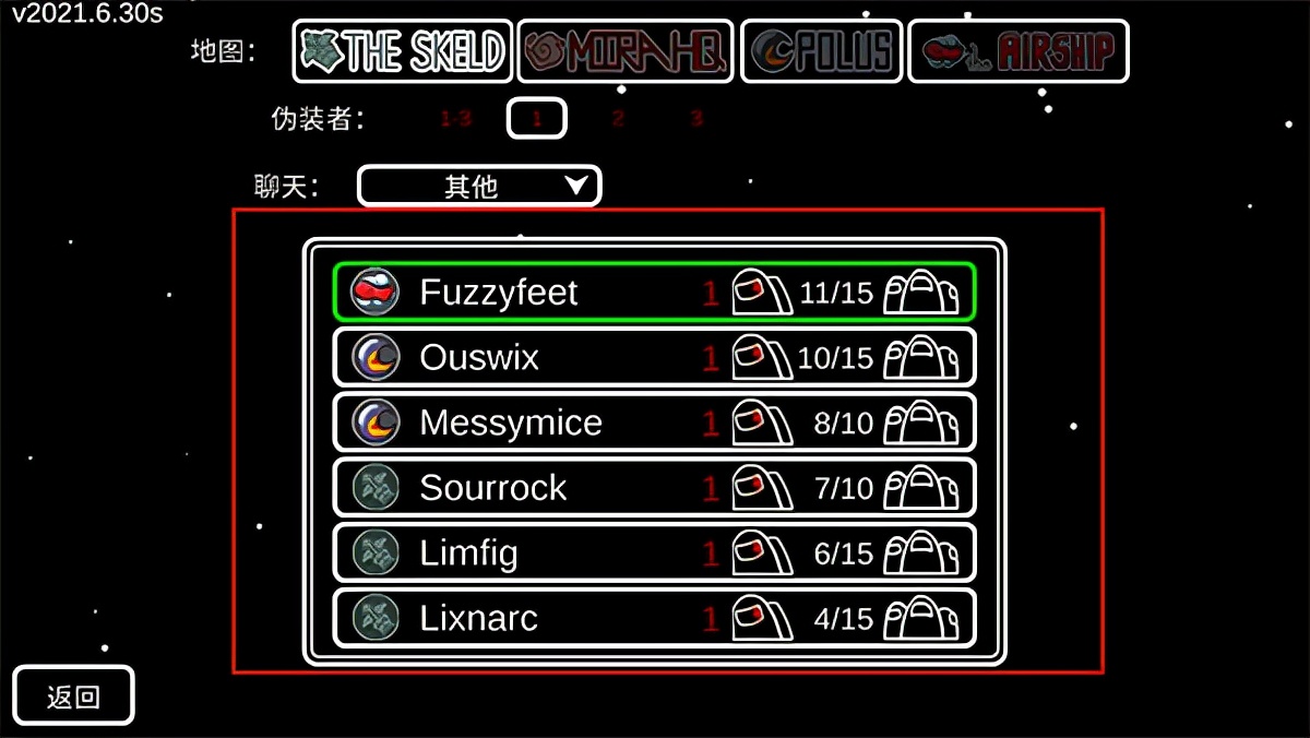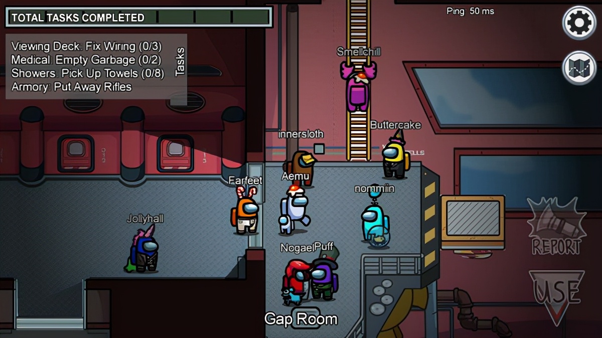1、游戏最多可同时容纳10人,至少需要5人才能开始游戏。不用担心没有人玩,凌晨都还有无数房间,一般在几秒内就能凑齐人开始游戏。2、内鬼的数目为1-3人,可自行设置,但一般都会设置成1个内鬼,因为这样才刺激,否则内鬼们一下子就把船员Kill光了就不好玩啦!3、除了内鬼外,其余的玩家都是船员。船员的任务是维修飞船,游戏一开始就会给每位船员布置维修任务。4、船员要根据任务单完成任务,当船员一组将所有任务都完成后则获胜。但在完成任务的过程中要时刻保持警惕,因为内鬼随时会出现在你身边将你干掉。5、即便不幸被干掉了也不代表你就出局了,你只是变成了鬼魂(ghost),仍可以以鬼魂的身份继续完成任务。