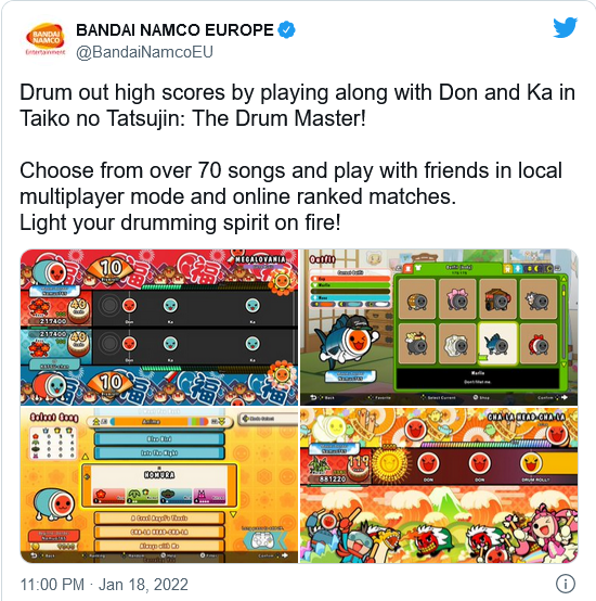 关于《太鼓达人:鼓师》的官方发布信息来自微软最新的Game Pass发布列表、万代南梦宫亚洲网站,以及万代南梦宫欧洲的Twitter,面向Xbox/PC平台的新游戏将有大约70首歌曲,双人本地多人游戏,以及在线排行榜功能。