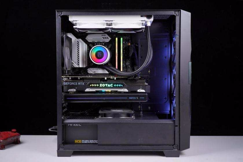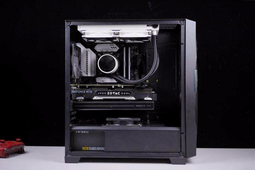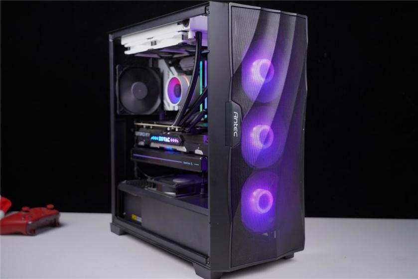 机箱使用的是安钛克的DF700机箱,作为安钛克的旗舰产品,这款机箱设计得非常有特色,前置面板非常有自己的特色。而且机箱内部有两个反方向风扇安装位置,这样设计就是为了应付RTX30系列显卡的,毕竟新显卡发热系数不低呀!