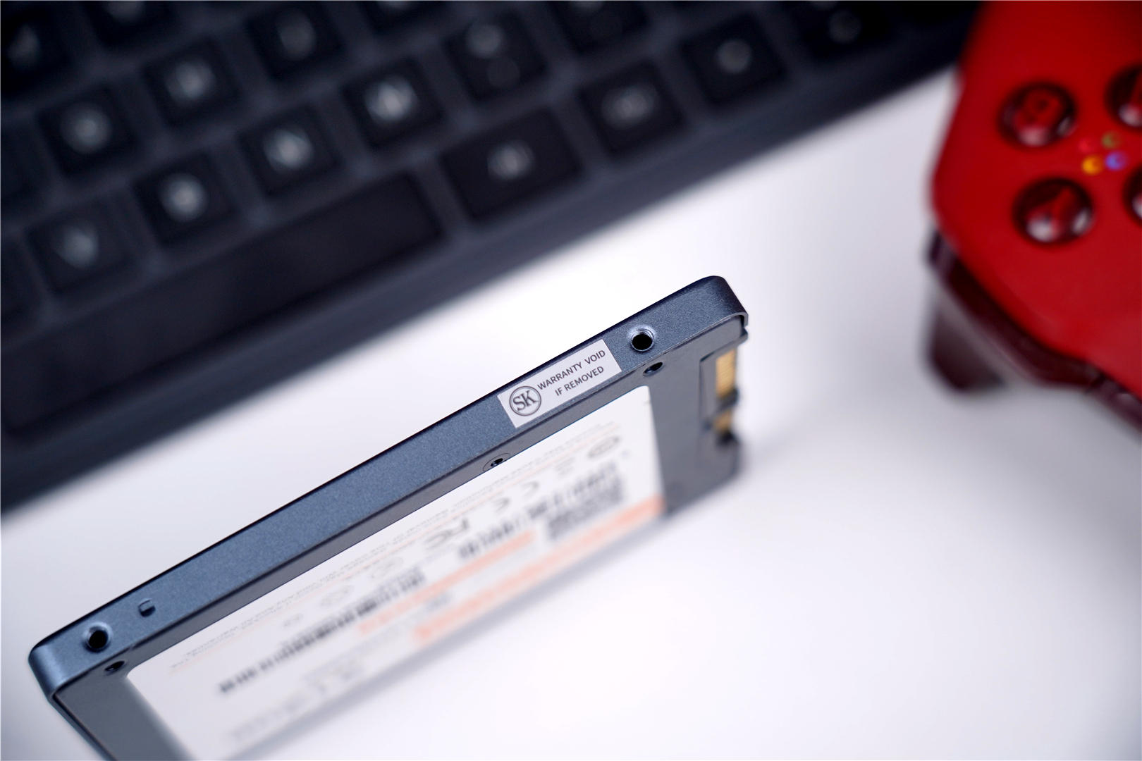 在侧面有防伪标签,而且唯一的一颗螺丝就在这个标签的下面,如果想要拆开硬盘需要破坏掉标签。