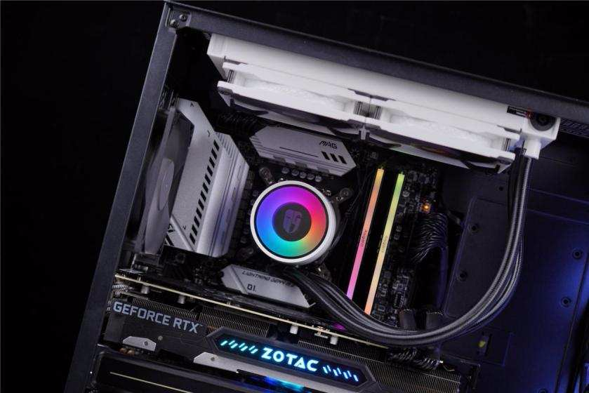 水冷使用的是九州风神 堡垒240 EX白色版,虽然堡垒系列也有RGB灯光的产品,不过我对EX系列情有独钟。堡垒240EX搭载了Anti-Leak内压控制阀。通过这个阀,可以将水冷内部的压力动态稳定住,从而让水冷运行的时候更加稳定,寿命更长。
