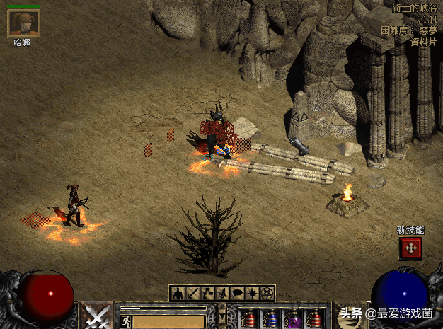 虽然在任务中有提示告诉了我们,如何才能找到正确的古墓,但是事实上我们大部分时候都不知道,这个符号相对比较隐蔽,藏在古墓旁边的石柱上。考虑到暗黑2不算什么3D大作,所以你必须足够细心才能发现真正的古墓。好吧,这已经是我20多年之后才发现的秘密。