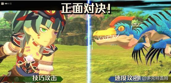 此外战斗中也经常会出现一些随行兽与怪物之间的正面对决,依据怪物之间不同的种类会有撞击对决、飞空对决和喷射对决几种。主要的玩法就是通过手柄/键盘进行QTE的快速敲击,以此来压制对面的怪物。