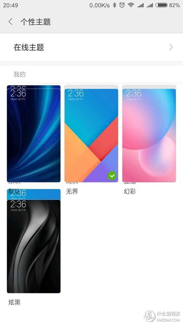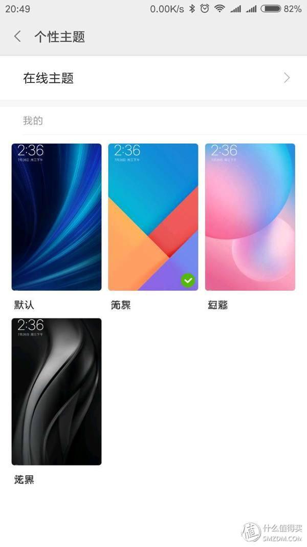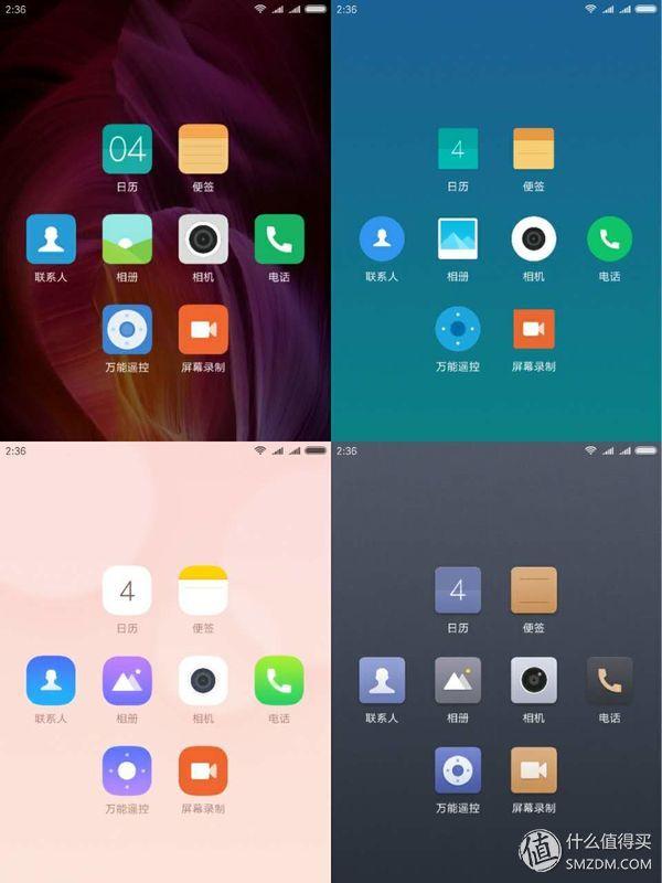MIUI 9默认四种主题,包括默认、无界、豆蔻、简灰,主题对应如下: