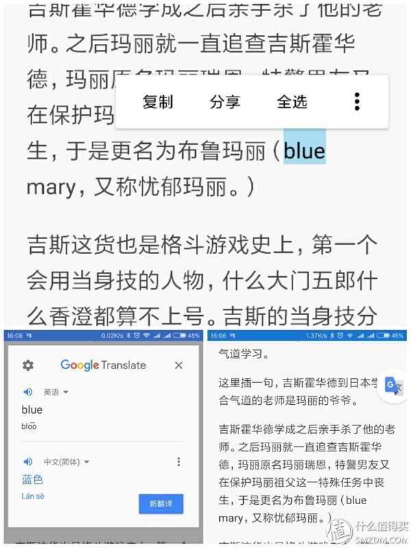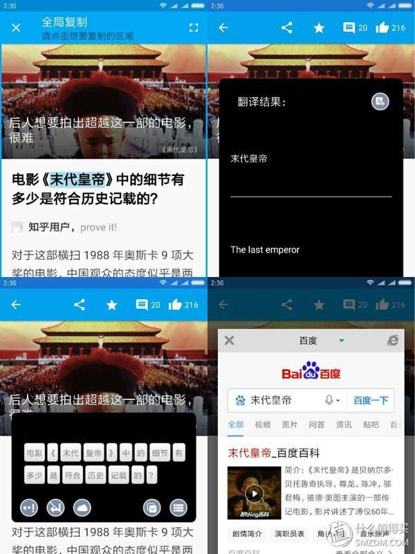下载锤子BigBang APP试用如下,选择复制,然后选中需要的行列,则跳出处理后的分词,可以对这些分词进行一些预定的操作,如分享、翻译、搜索,整个过程操作起来反馈清晰,而MIUI 9 传送门由于经常长按响应较慢或无响应,导致使用起来更不明确,考虑目前是开发版,期待后续优化。