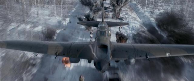 ▲在近日上映的俄罗斯电影《飞行员》中,伊尔-2使用火箭弹和机炮对一支德军车队发起攻击的场景