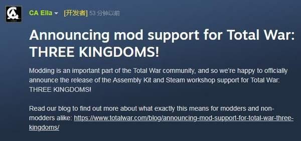 CA日前宣布,为《三国:全面战争》添加官方MOD支持,同时本作的Steam创意工坊也正式开放,玩家现在可以通过MOD定制的游戏内容包括发家地点、数据库表格、作战地图、角色形象、模型和动画等等,不过音频文件、战役地图、游戏代码、战斗资源等暂不支持修改。