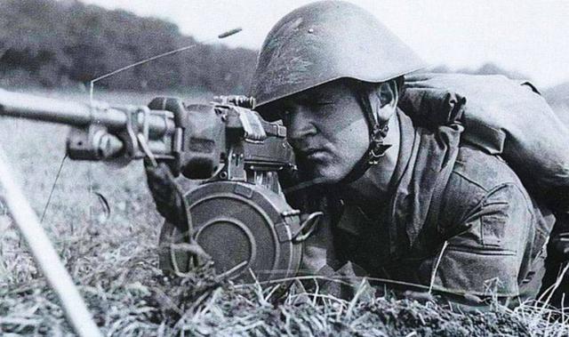 然而,如果翻开二战的苏军照片就会发现,DP-28轻机枪并非是苏军唯一的轻机枪,在战争末期的照片里还出现了一款形似PK轻机枪的轻机枪。这PK轻机枪出现在战后,怎么在战前就出现个类似的来?莫非是穿越了不成?