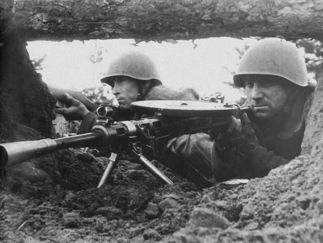 在实战当中DP-28轻机枪难以压制德国人的两款通用机枪,对付一挺德国通用机枪需要三挺DP-28轻机枪才行。