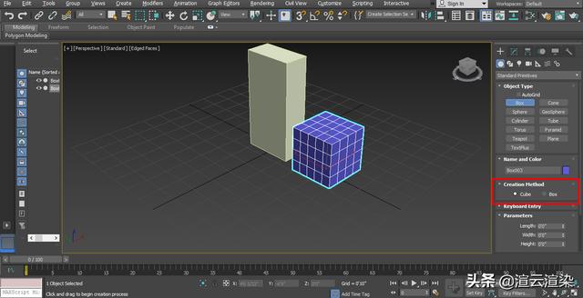 第 7 步: 通过创建方法,我们可以选择 Cube 或 Box 选项来绘制立方体或长方体形状的盒子。