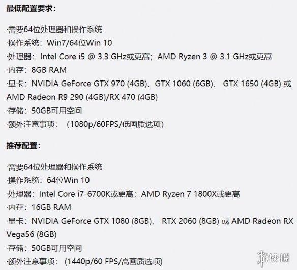 而除了官方的优化外,也可以看到之前推荐配置的1440p分辨率选项变成了1080p选项,并且强调GTX 970显卡需将纹理质量设置为“中等”。这可能也是为何新配置需求有所降低的原因之一。
