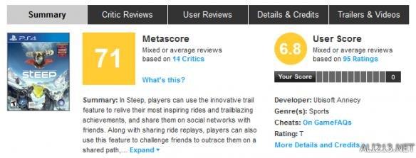 游戏在Metacritic的平均评分71分,玩家评分6.8分(10分制)