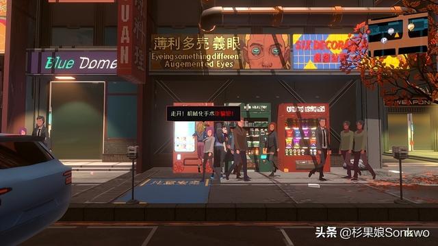 如果玩家细心观察的话,会发现城市中的每一个 NPC 都有自己特殊的“意义”。帮派分子急着扩张地盘收保护费,黑市商人哄骗路人做昂贵的义肢改装,音乐爱好者在酒吧门口把酒言欢。他们都在这座城市里扮演着自己的角色,并以此来加深游戏的真实性和代入感。