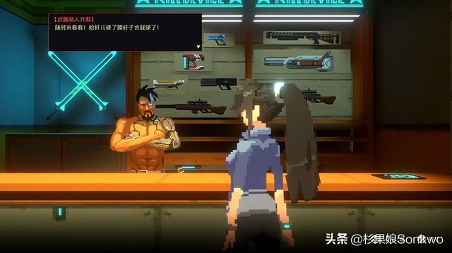 除此之外我们还能在姐姐的酒吧中看到酷似《VA-11 Hall-A:赛博朋克酒保行动》调酒师吉尔的角色;古董店里摆放的“古董”电脑和展示的红白机游戏画面也展现了时代变迁后科技的进步与人们对于时代的留恋;而在房间以及路边张贴的《黑客帝国》《攻壳机动队》等海报也向玩家展示了开发团队对于场景细心的打磨。随着游戏的不断推进,那些深埋在游戏各个角落的小惊喜也确实给我带来了那种“同道中人”般愉悦的感受。