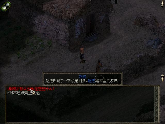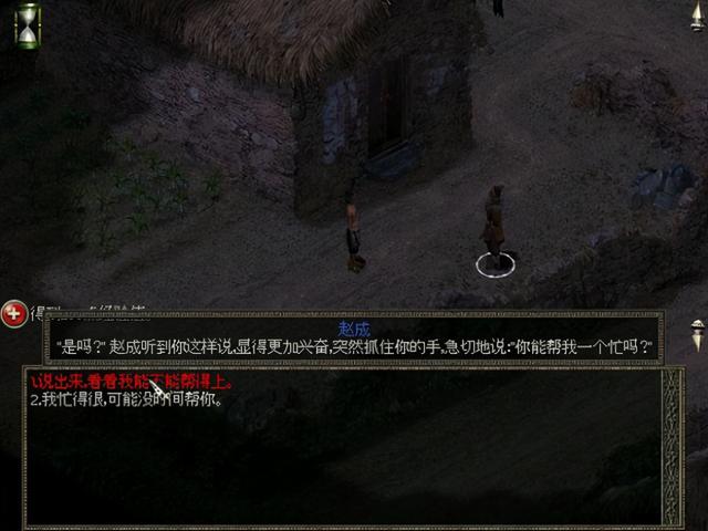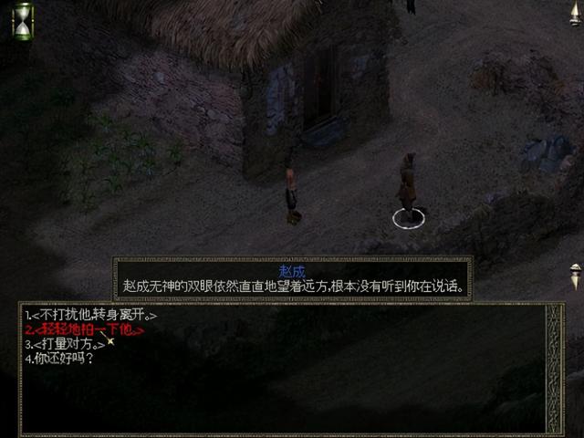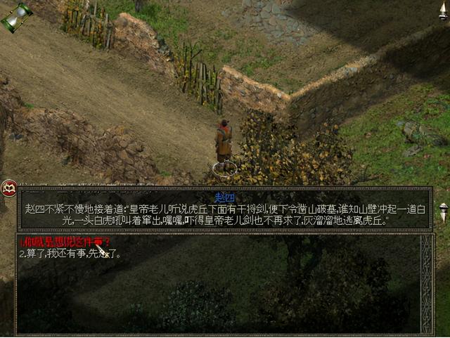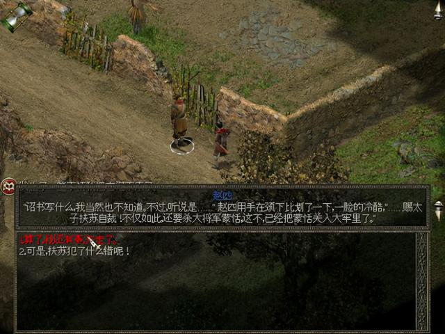 拿完后从赵茜家旁离开村子遇到赵四,得知干将、莫邪剑所在和蒙将军被关在牢中的信息后结束对话。
