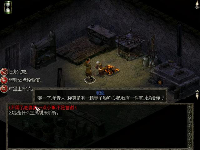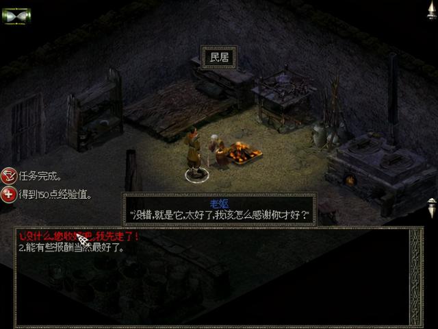 然后与老婆婆对话选“没什么、不用了“老婆婆告知剑在屋后井里,获得150点经验和2点声望。